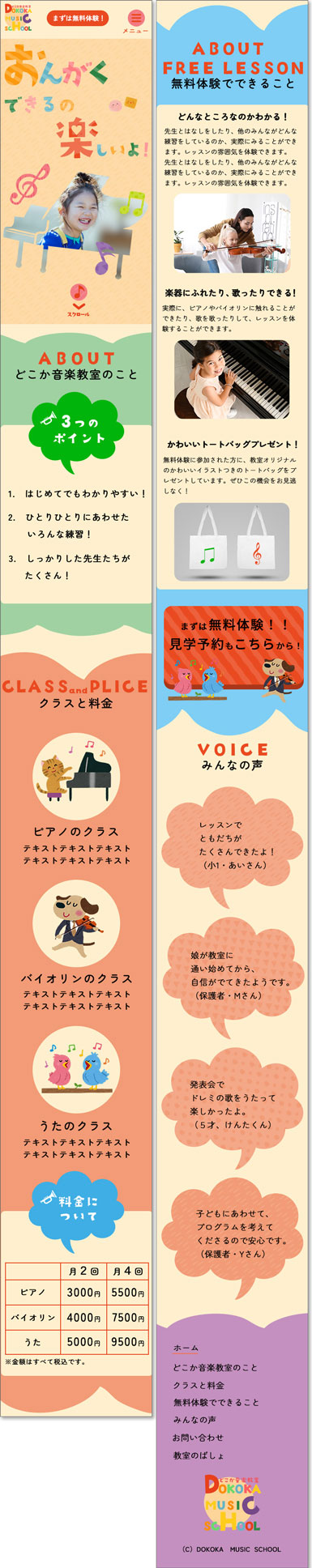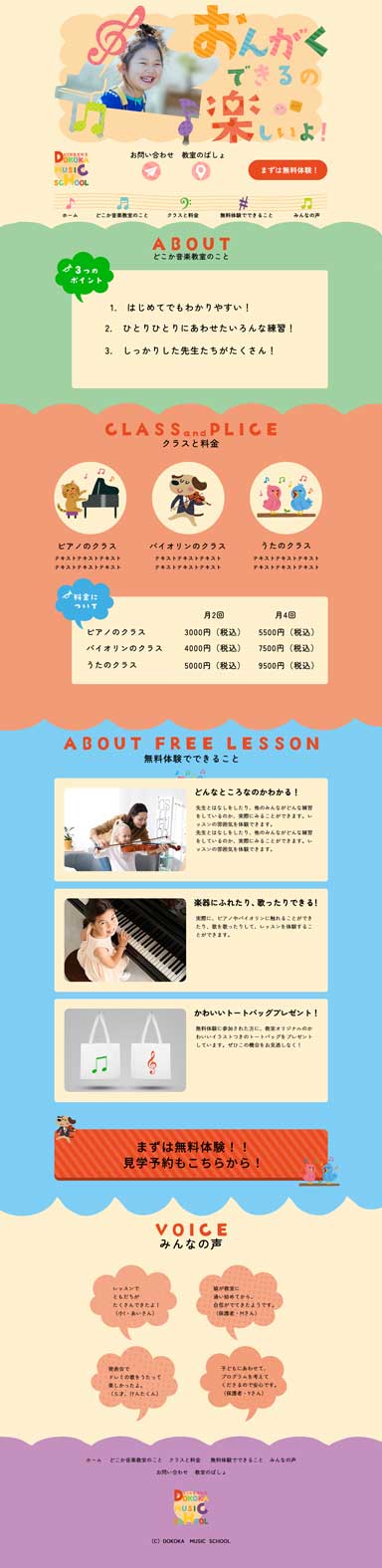 子ども向けの音楽教室から利用者を増やすため、サイトの作成を依頼されたと仮定しました。